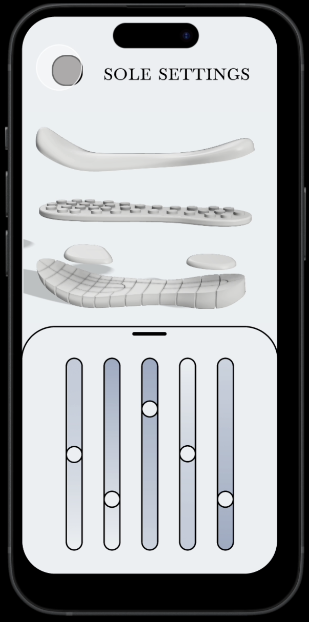 The design process involved iterative prototyping—balancing comfort, performance, and aesthetics while integrating technology discreetly within the form of the shoe. Materials were selected for flexibility and support, while the app interface was designed for clarity and accessibility, allowing users to easily monitor progress and receive tailored feedback. The result is a thoughtful fusion of fashion and function that demonstrates how AI can enhance everyday movement and promote a more connected, health-conscious lifestyle.